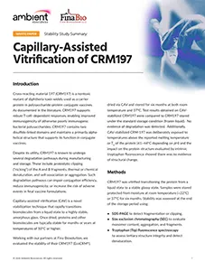Learn how Capillary-Assisted Vitrification (CAV) stabilizes CRM197, a critical carrier protein for conjugate vaccines, enabling long-term storage at ambient and elevated temperatures. This whitepaper details a six-month stability study done in collaboration with Fina Biosolutions, demonstrating that CAV-stabilized CRM197 maintains structural integrity and prevents degradation without refrigeration.